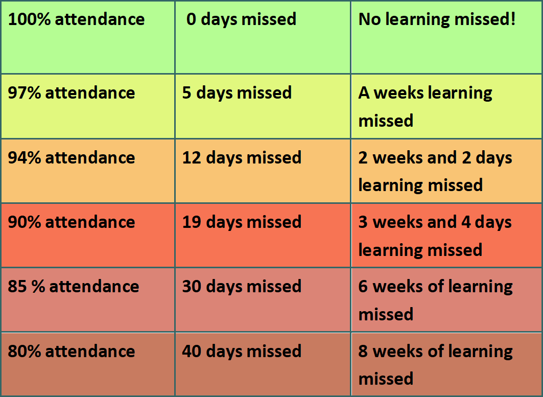 – Personal attendance targets - Positive messages to parents when attendance improves significantly
